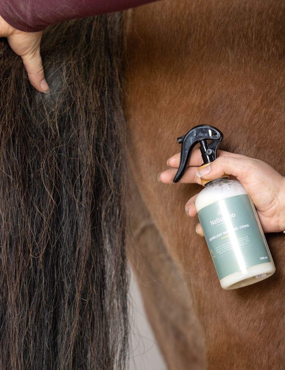 L'hydratation en profondeur du crin permet une utilisation raisonnable du produit même chez les chevaux vivant au pré !